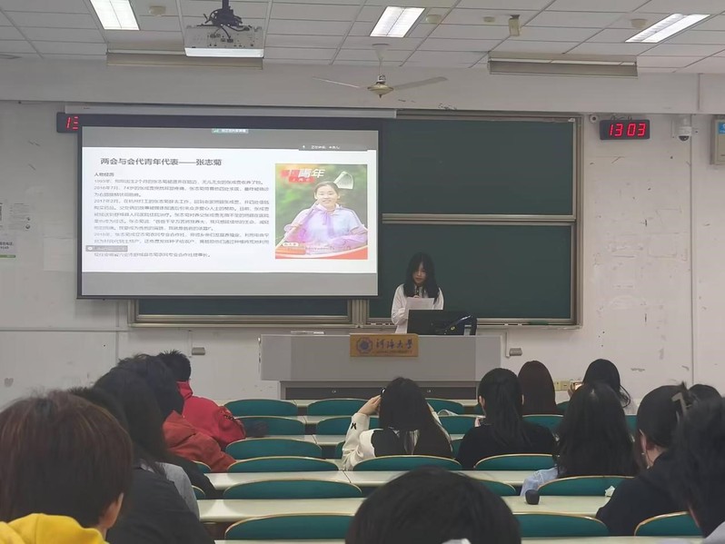 本次活动邀请到了搜同 青马公开课讲师杨欣同学、顾欣雨同学、李雨熙同学。公开课上,杨欣同学从政府工作报告内容、亮点等方带领同学们深入学习政府工作报告。顾欣雨同学从“十四五”规划的指导方针与远景目标、中国现代化建设的内容和要点、站在两会的关键节点、实现中华民族伟大复兴的中国梦这四个维度带领同学们了解2024年是中国现代化建设的关键之年,是一个承前启后、继往开来的关键之年。李雨熙同学重点介绍了全国两会的青年代表。全国两会上,有不少新当选的年轻面孔。不管是来自偏远山区、祖国边疆的青年代表,还是走遍世界、拥有丰富的国际交往经验的青年代表,都以自身的经历,向外界讲述着真实的中国故事。“强国建设、民族复兴的接力棒,历史地落在我们这一代人身上。”中国人有信心完成民族复兴伟业,中国青年更有信心担负起时代使命。