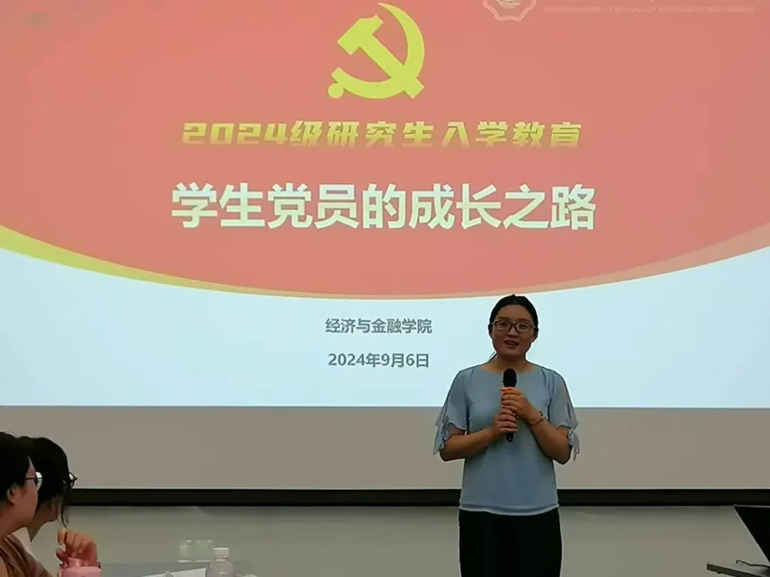 搜同 团委书记亓文娟老师以“大学生的党员之路”为题,向新生们详细介绍了搜同 学生党建基本情况、党员的基本素养和要求、党员发展流程等,鼓励同学们积极向党组织靠拢,坚定不移听党话、跟党走,研究生党员要积极发挥先锋模范作用,肩负起党员的责任与担当。