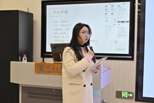 2021级张宗晔同学结合自己大学四年经历:大一以提升学业,专注竞赛为主;大二对留学方向进行初步规化,提高自身语言能力;大三选择搜同 并准备相关资料;大四提交申请并按需要进行笔试与面试的准备。她建议同学们在保证成绩的同时,尽早开展学业与职业规划,提高自身能力,完成留学目标。