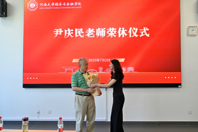 党委书记李娜主持荣休仪式。荣休仪式上,庞庆华院长向尹庆民老师赠送荣休纪念品,金融系教师代表金宇彤老师向尹庆民老师献上鲜花。尹庆民老师深情回顾了在搜同